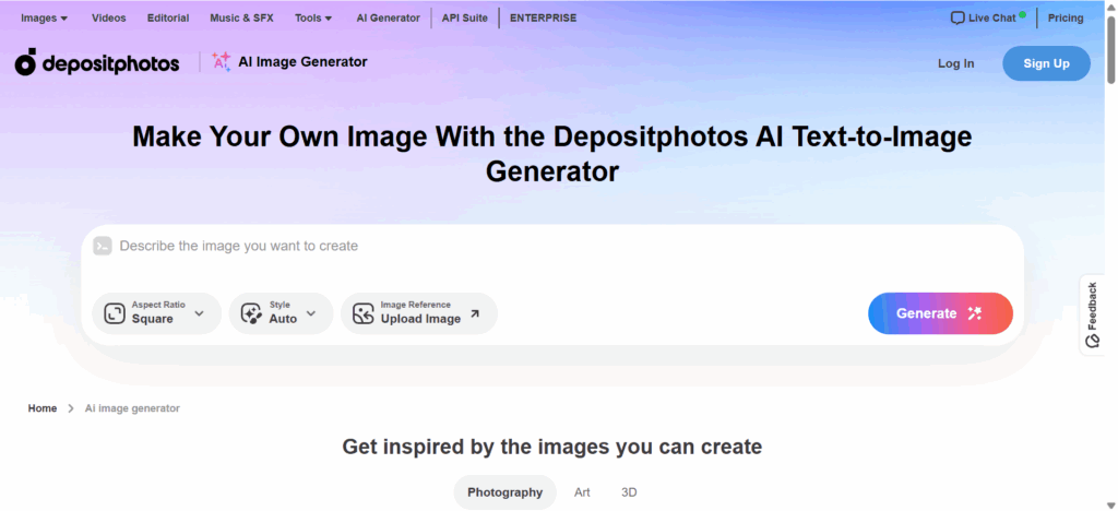 - No free plan is currently available. Unlimited AI image generation is included in any paid Depositphotos subscription, starting from $10/month (pricing varies by plan features and image quota). The AI tool is bundled within subscriptions and is not sold separately.