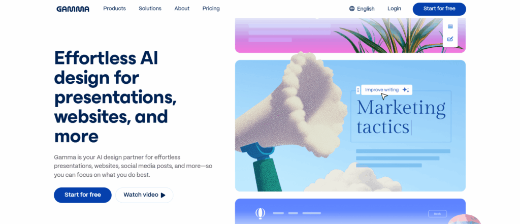 Gamma isn’t just another presentation tool. It’s designed for storytelling. It helps you build sleek, modern decks that feel more like visual narratives than stiff slide shows. Consultants love it for proposals, brand storytelling, and strategic roadmaps that need to impress.