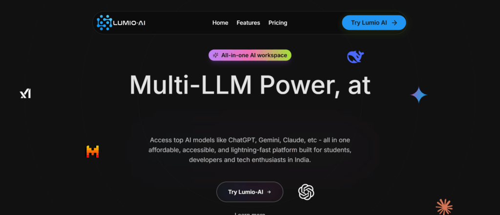 | Lumio AI | Multi-Model Platform | Switches between AI models from one simple dashboard. |