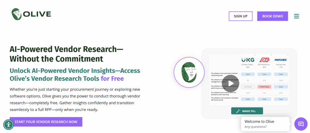 Olive is a time-saver. It streamlines RFP processes, vendor evaluations, and client intake. These tasks can eat up days in a consultant’s schedule. By automating comparison tables and evaluations, it keeps your focus on strategy, not admin.