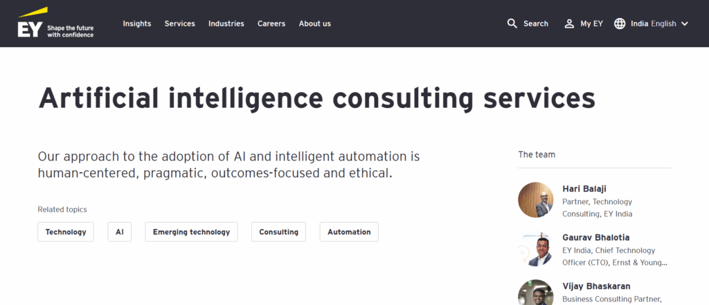 | EY.ai | AI Tools for Consulting | Supports tax, risk, and compliance with enterprise AI. |
