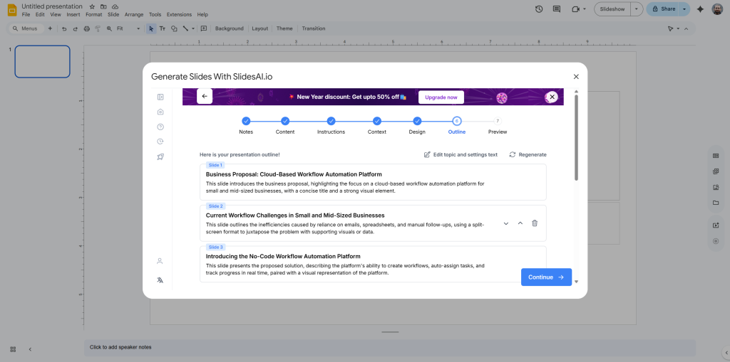 Step 7: Done! Your presentation will be ready within seconds. You can now fine-tune it or present as is.