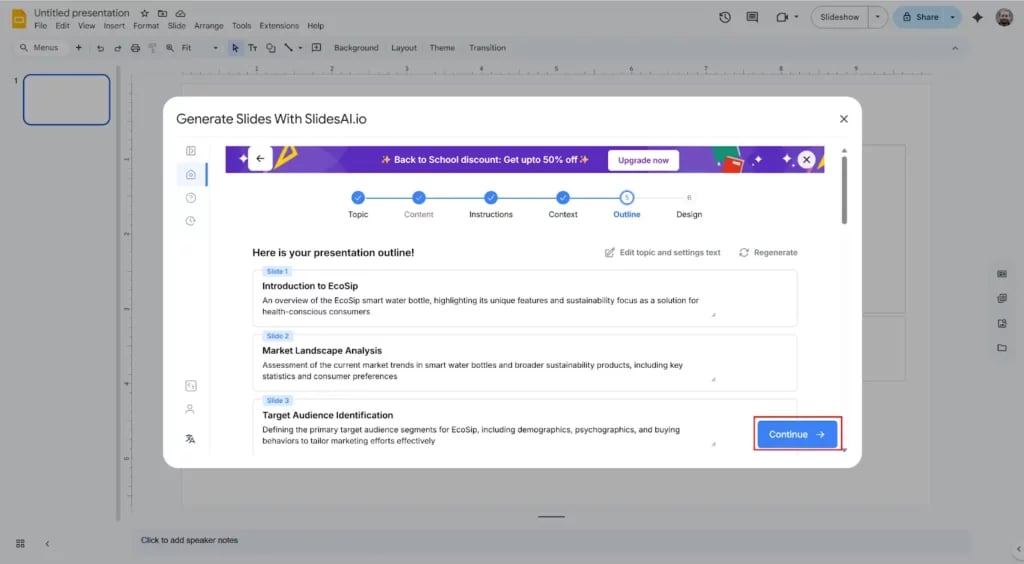 Step 7: Generate your slide outline.