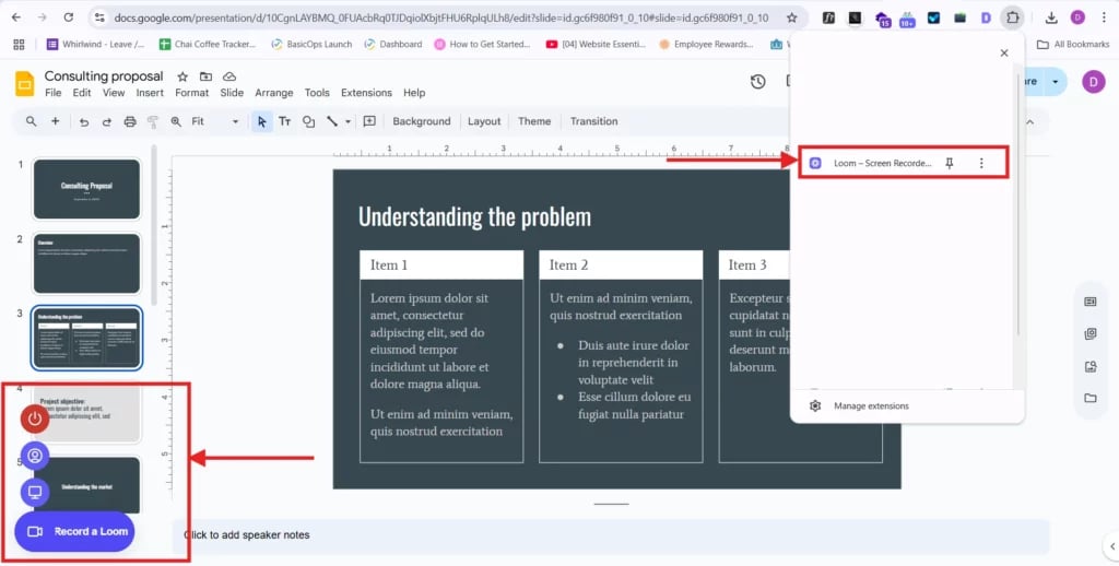 Add a screen recorder like Screencastify, Riverside, Loom, or any tool you prefer. Most of these are available as Chrome extensions and take just a minute to install.
