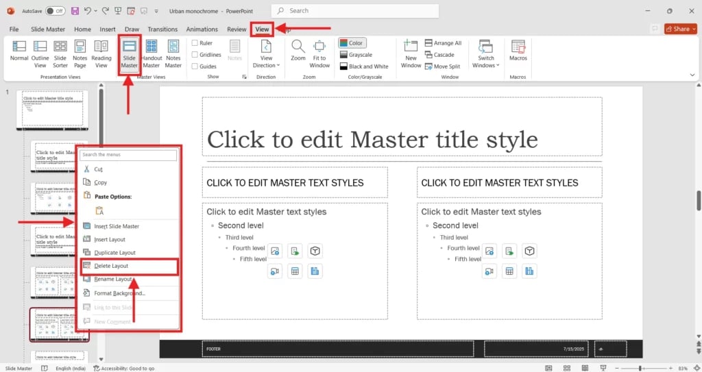 - Go to View > Slide Master.
