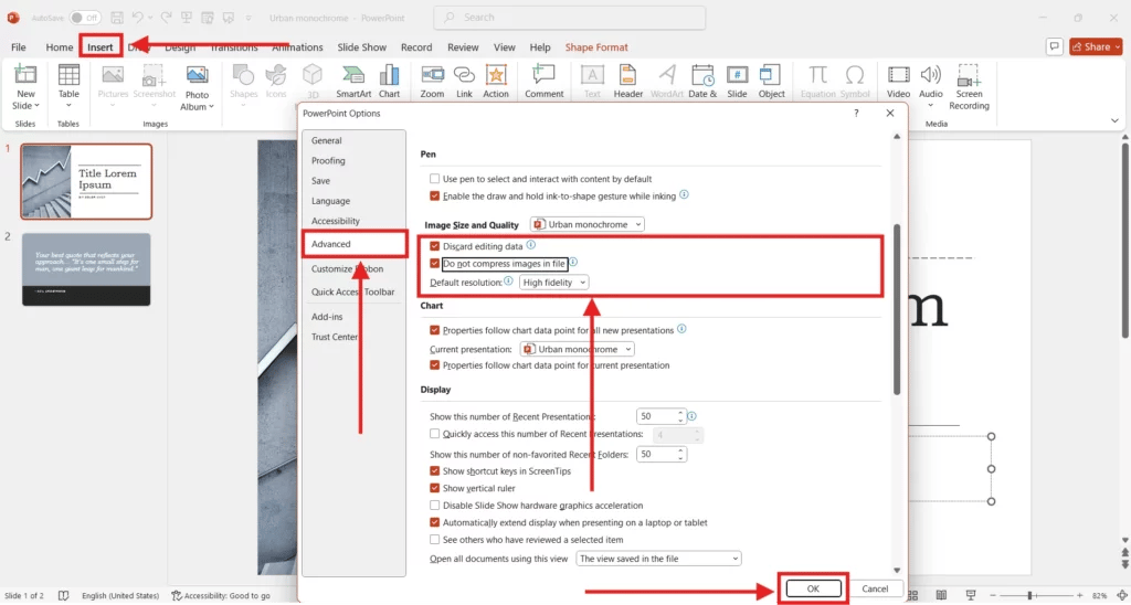 Can I reduce the PowerPoint file size without losing quality?