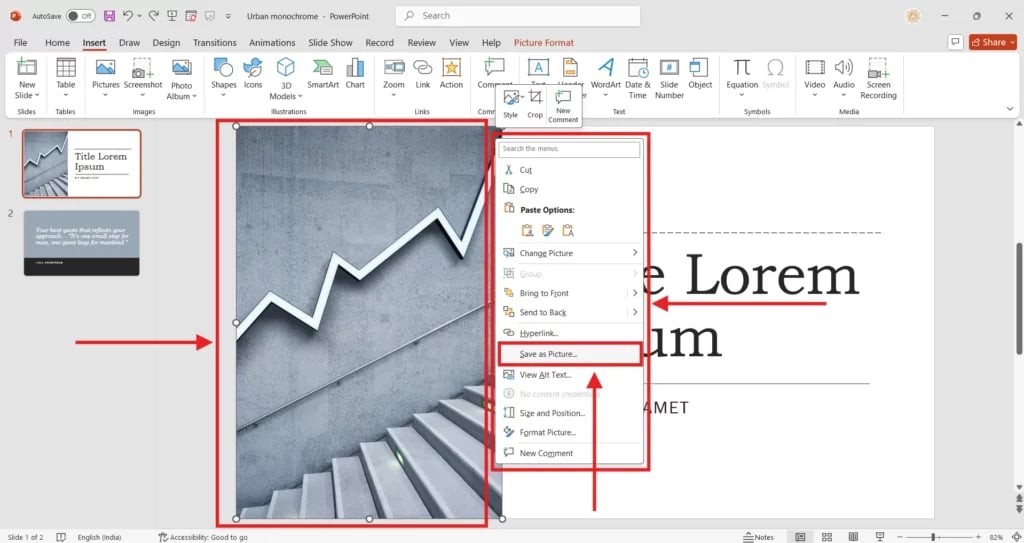 - Right-click an image > Save as Picture, select JPEG or PNG.