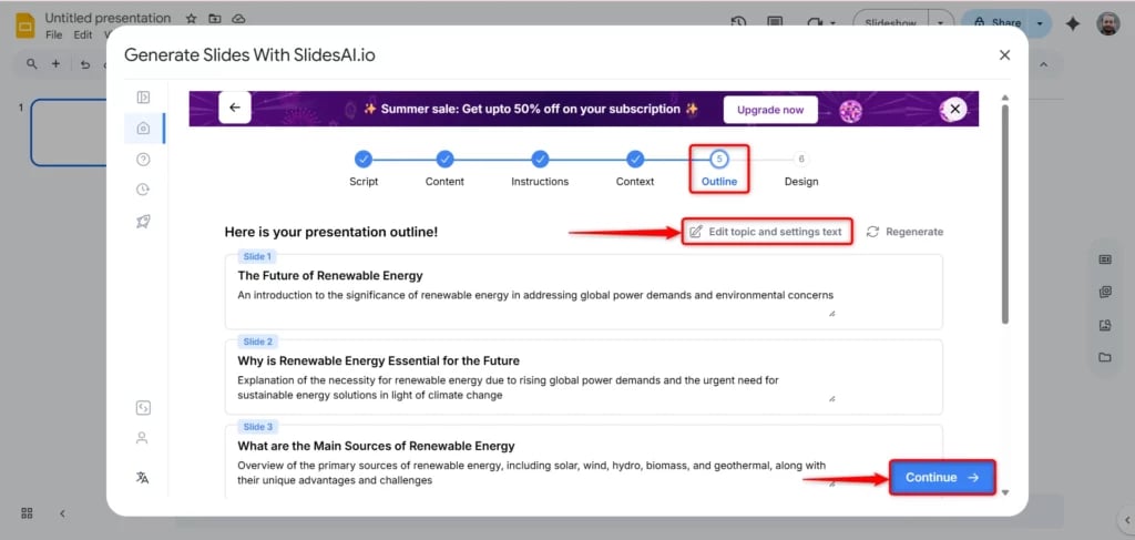 Make any adjustments before moving on to slide generation.